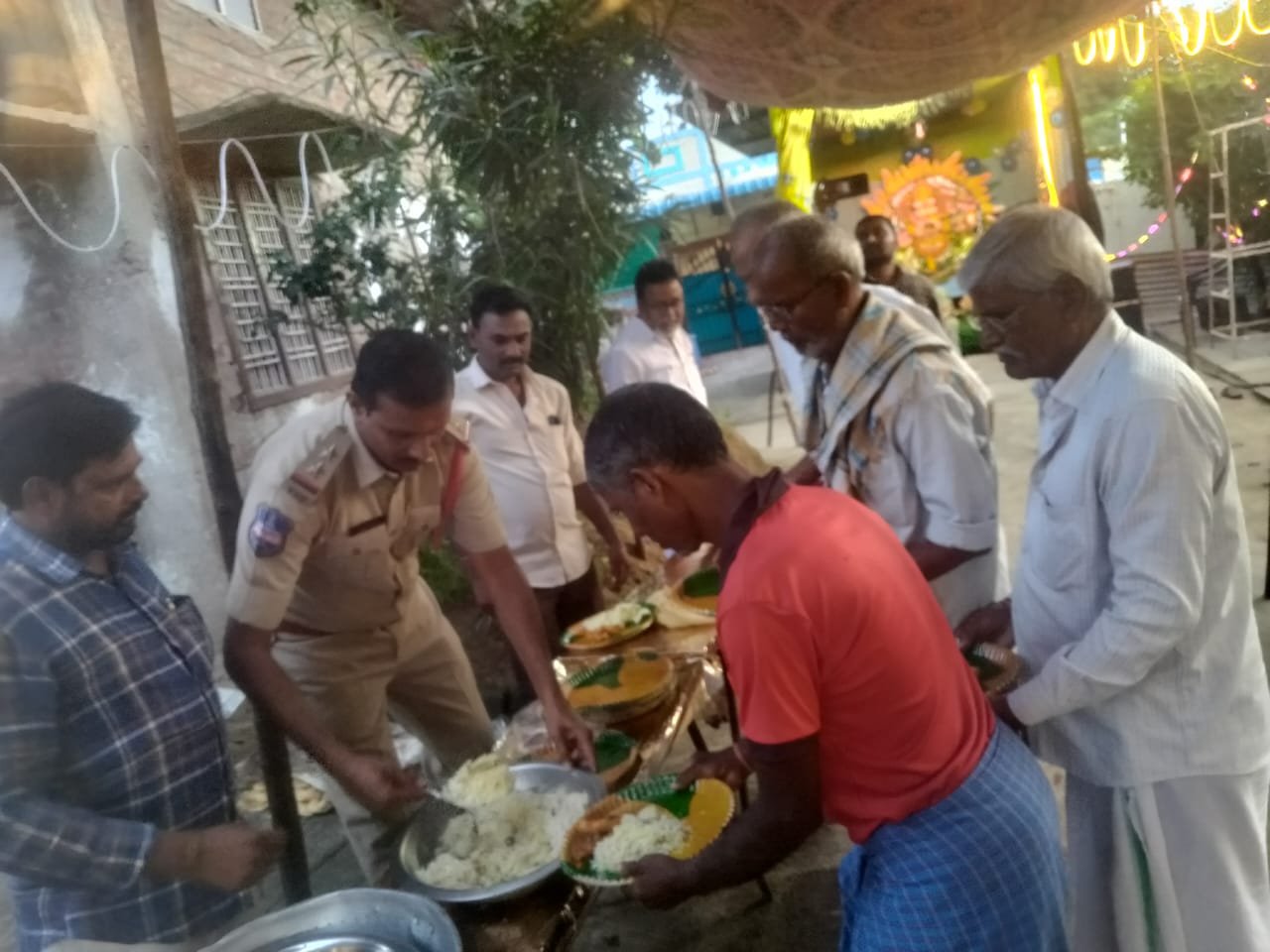 దామెర మండలంలోని ఒగ్లాపూర్ గ్రామం లోని కాపు వాడలో నెలకొల్పిన గణేష్ మండపం వద్ద ఆకుల శోభా కుమారస్వామి పుణ్య దంపతుల ఆధ్వర్యంలో నిర్వహించిన అన్న ప్రసాదం వితరణ కార్యక్రమానికి ముఖ్యఅతిథిగా దామెర ఎస్సై కొంక అశోక్ హాజరై ప్రారంభించారు. ఈ సందర్భంగా మండప నిర్వాహకులు ఎస్సై అశోక్ ని శాలువాతో సత్కరించారు.