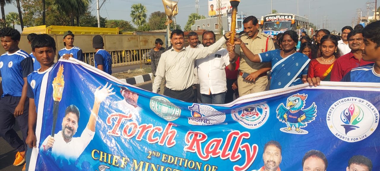 వరంగల్ వాయిస్, దామెర : ముఖ్యమంత్రి కప్ క్రీడా పోటీల సందడి మండలంలో మొదలైంది. పోటీల ప్రాముఖ్యతను చాటిచెబుతూ శుక్రవారం దామెర మండలంలోని ఊరుగొండ, ఒగ్లాపూర్, దామెర గ్రామ పంచాయతీల్లో ‘సీఎం కప్ టార్చ్ ర్యాలీ’ అత్యంత ఉత్సాహంగా జరిగింది. జిల్లా యువజన క్రీడల అధికారి ఆధ్వర్యంలో నిర్వహించిన ఈ ర్యాలీకి క్రీడాకారులు, విద్యార్థులు, యువత భారీ సంఖ్యలో తరలివచ్చారు. మండలంలోని ప్రధాన గ్రామాల్లో సాగిన ఈ టార్చ్ ర్యాలీకి ప్రజాప్రతినిధులు, గ్రామస్థులు ఘనస్వాగతం పలికారు. క్రీడా జ్యోతిని చేతబూని క్రీడాకారులు ఉత్సాహంగా పరుగులు తీశారు. ఈ సందర్భంగా అధికారులు మాట్లాడుతూ.. గ్రామీణ ప్రాంతాల్లోని క్రీడా నైపుణ్యాన్ని వెలికితీయడమే సీఎం కప్ ప్రధాన ఉద్దేశమని, యువత ఈ పోటీల్లో పెద్ద ఎత్తున పాల్గొని తమ ప్రతిభను చాటాలని పిలుపునిచ్చారు. గ్రామీణ క్రీడాకారులకు ఈ పోటీలు ఒక గొప్ప వేదికని, క్రీడలు శారీరక దృఢత్వంతో పాటు మానసిక ఉల్లాసాన్ని, క్రమశిక్షణను పెంచుతాయని పేర్కొన్నారు. మండల వ్యాప్తంగా క్రీడా వాతావరణాన్ని పెంపొందించేలా ఈ ర్యాలీని విజయవంతం చేసిన అందరికీ ఎంపీడీవో కృతజ్ఞతలు తెలిపారు. ఈ కార్యక్రమంలో దామెర ఎంపీడీవో గుమ్మడి కల్పన, పంచాయతీ కార్యదర్శి నరేష్, ఒగ్లాపూర్ గ్రామ సర్పంచి శ్రీధర్ రెడ్డి, దామెర ఎస్సై కొంక అశోఖ్, ఎంఈఓ రాజేష్ నాయక్, ఊరుగొండ సర్పంచ్ శ్రీనివాస్, మండల అధికారులు, క్రీడాకారులు, వ్యాయామ ఉపాధ్యాయులు, గ్రామస్థులు పాల్గొన్నారు.