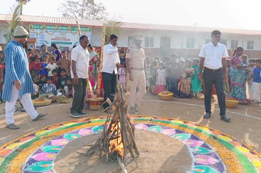 వరంగల్ వాయిస్, పర్వతగిరి: అన్నారంలోని పల్లవి మోడల్ స్కూల్లో శుక్రవారం ముందస్తు సంక్రాంతి సంబరాలు అత్యంత వైభవంగా జరిగాయి. పాఠశాల చైర్మన్ అశోక్ చారి, కరస్పాండెంట్ గంజి మహేందర్, డైరెక్టర్ కోటగిరి రమేష్ ఆధ్వర్యంలో నిర్వహించిన ఈ వేడుకలు గ్రామస్తులను విశేషంగా ఆకట్టుకున్నాయి. ఈ కార్యక్రమానికి ముఖ్య అతిథులుగా పర్వతగిరి ఎస్ఐ ప్రవీణ్, అన్నారం సర్పంచ్ గాడిపెళ్లి మహేందర్ హాజరయ్యారు. అతిథులు విద్యార్థులతో కలిసి గాలిపటాలు ఎగురవేసి, భోగి మంటల వద్ద సందడి చేస్తూ వారిని ఉత్సాహపరిచారు. ఈ సందర్భంగా విద్యార్థులు వివిధ కుల వృత్తులను ప్రతిబింబించేలా వేషధారణలతో అలరించారు. హరిదాసులు, బసవన్నల రాకతో పాఠశాల ప్రాంగణం ఒక కుగ్రామాన్ని తలపించింది. విద్యార్థినులు వేసిన రంగోళి (ముగ్గుల) పోటీలు వారి ప్రతిభకు అద్దం పట్టాయి. సంక్రాంతి పాటలకు విద్యార్థులు చేసిన నృత్యాలు అందరినీ మంత్రముగ్ధులను చేశాయి. బాలురు తాడు గుంజుడు పోటీల్లో ఉత్సాహంగా పాల్గొని సందడి చేశారు. ఎడ్ల బండి ప్రదర్శన, గాలిపటాల పోటీలు ప్రత్యేక ఆకర్షణగా నిలిచాయి. అతిథులు మాట్లాడుతూ.. ఇలాంటి వేడుకల ద్వారా నేటి తరం విద్యార్థులకు మన భారతీయ సంప్రదాయాలు, పండుగల విశిష్టత తెలుస్తుందని కొనియాడారు. చదువుతో పాటు మన మూలాలను గౌరవించడం నేర్పడం అభినందనీయమన్నారు. ఈ కార్యక్రమంలో పాఠశాల ఉపాధ్యాయులు, విద్యార్థులు, తల్లిదండ్రులు పెద్ద ఎత్తున పాల్గొన్నారు.