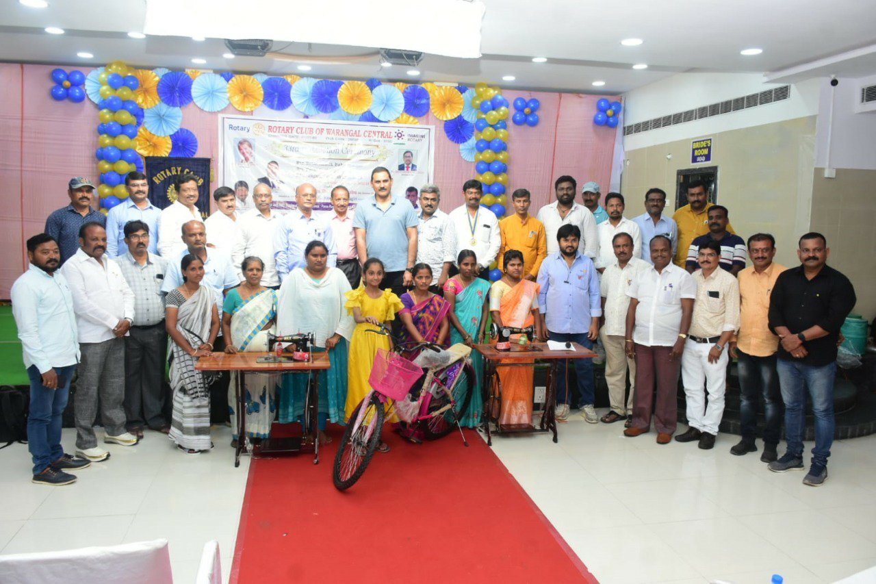 వరంగల్ వాయిస్, ఖిలా వరంగల్ : రోటరీ క్లబ్ ఆఫ్ వరంగల్ సెంట్రల్ నూతన కమిటీ ప్రమాణస్వీకారోత్సం సోమవారం కాశిబుగ్గలోని వేడుకల మందిరంలో అంగరంగ వైభవంగా నిర్వహించారు. ఈ కార్యక్రమానికి ముఖ్యఅతిథిగా విచ్చేసిన అసిస్టెంట్ గవర్నర్ డాక్టర్ శరత్ బాబు నూతన కమిటీచే ప్రమాణస్వీకారం చేయించారు. క్లబ్ ప్రెసిడెంట్గా బేతి అశోక్ బాబు, సెక్రటరీగా భేతి సతీష్, కోశాధికారిగా ప్రభాకర్, కార్యవర్గ సభ్యులు ప్రమాణ స్వీకారోత్సవం చేశారు. ఈ సందర్భంగా నూతన అధ్యక్షుడు బేతి అశోక్ మాట్లాడుతూ మానవసేవే మాధవసేవ అనే నినాదంలో రోటరీ క్లబ్ ముందంజలో ఉంటుందన్నారు. ఈ కార్యక్రమంలో పేదలకు ఐదు కుట్టుమిషన్లు, స్కూలుకు పోయే పిల్లలకు ఐదు సైకిళ్లు ఉచితంగా అందజేశారు. కాశిబుగ్గ ఎస్సార్ నగర్ ప్రైమరీ స్కూల్ విద్యార్థులకు ప్యాడ్స్, బుక్స్, బ్యాగ్స్, షూస్, చైర్స్ అందించారు. బేతి అశోక్ ఆధ్వర్యంలో 25 మంది సభ్యులుగా చేరారు. ఈ కార్యక్రమంలో రాయపర్తి తహసీల్దార్ కుసుమ సత్యనారాయణ, గత సంవత్సర క్లబ్ ప్రెసిడెంట్ పోరండ్ల రత్నాకర్, సీనియర్ రొటీరియన్స్ జూలూరు కృష్ణమూర్తి, వడ్నాల సదానందం, చకిలం మహేందర్, ఉపేందర్, వేణు, నాగేశ్వరరావు, కుసుమ సత్యనారాయణ, జూరతి శ్రీనివాస్, రాజు, కిరణ్, కారు హరి, సతీష్, వెంకట్, బోడపాటి సూర్యనారాయణ, సురేందర్, ఇతర క్లబ్ ప్రెసిడెంట్లు, సెక్రటరీలు తదితరులు పాల్గొన్నారు.
