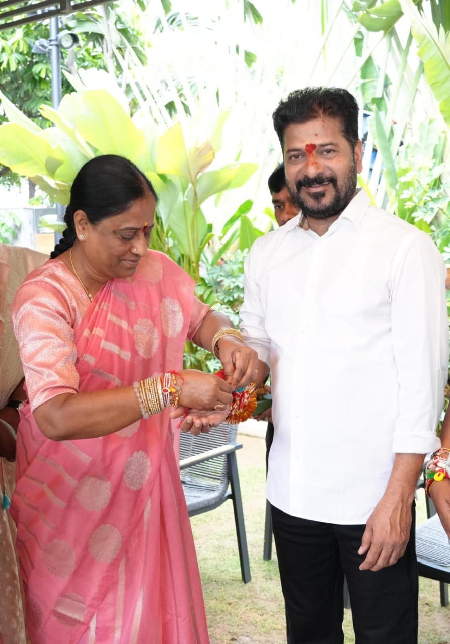 వరంగల్ వాయిస్,హైదరాబాద్ :రాఖీ పౌర్ణమి పురస్కరించుకొని రాష్ట్ర అటవీ,పర్యావరణ,దేవాదాయ ధర్మాదాయ శాఖ మంత్రివర్యులు కొండా సురేఖ శనివారం ముఖ్యమంత్రి రేవంత్ రెడ్డి కి రాఖీ కట్టారు.ఈ సందర్బంగా మంత్రి కొండా సురేఖ తనకు సొంత సోదరి లాగా అని ముఖ్యమంత్రి రేవంత్ రెడ్డి తన ఆప్యాయతను వ్యక్తం చేశారు.అన్న చెల్లెళ్ల,అక్క తమ్ముళ్ళ అనుబంధాన్ని చాటే రాఖీ పండుగ ప్రతి ఒక్కరు ఆనందోత్సావాల నడుమ జరుపుకోవాలని ఆకాంక్షించారు.ఈ సందర్భంగా మంత్రి కొండా సురేఖ రాష్ట్ర ప్రజలందరికీ రాఖీ పండుగ శుభాకాంక్షలు తెలిపారు.